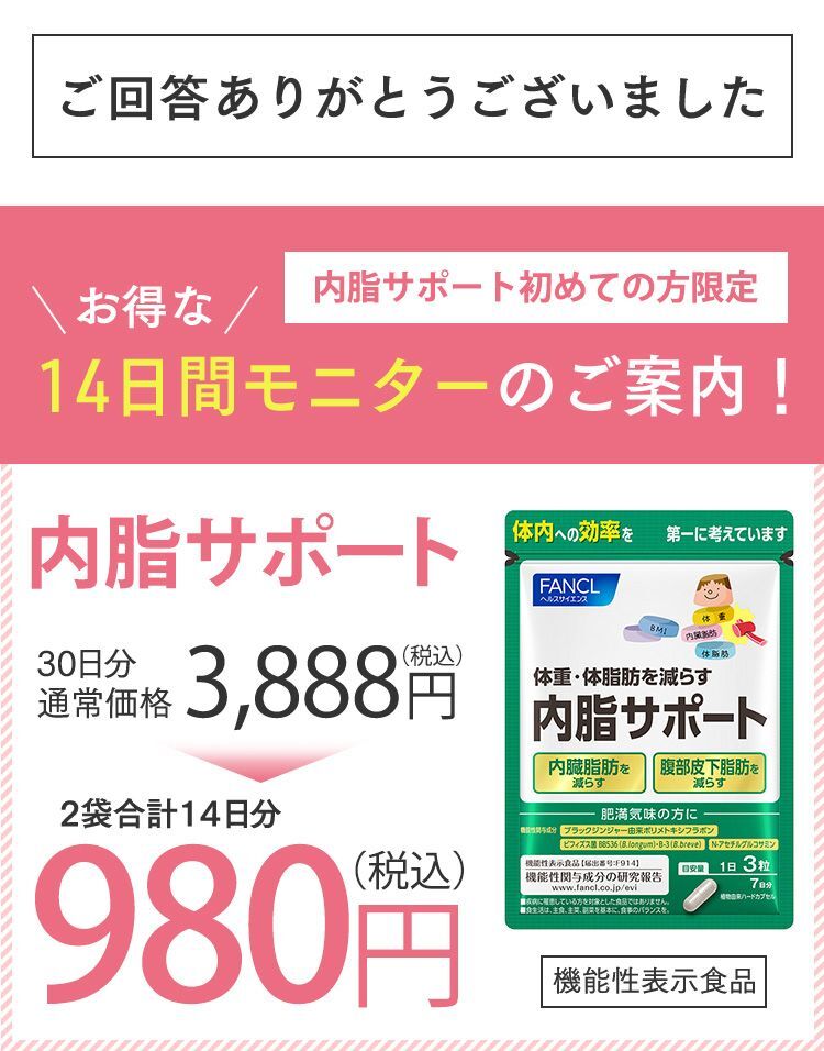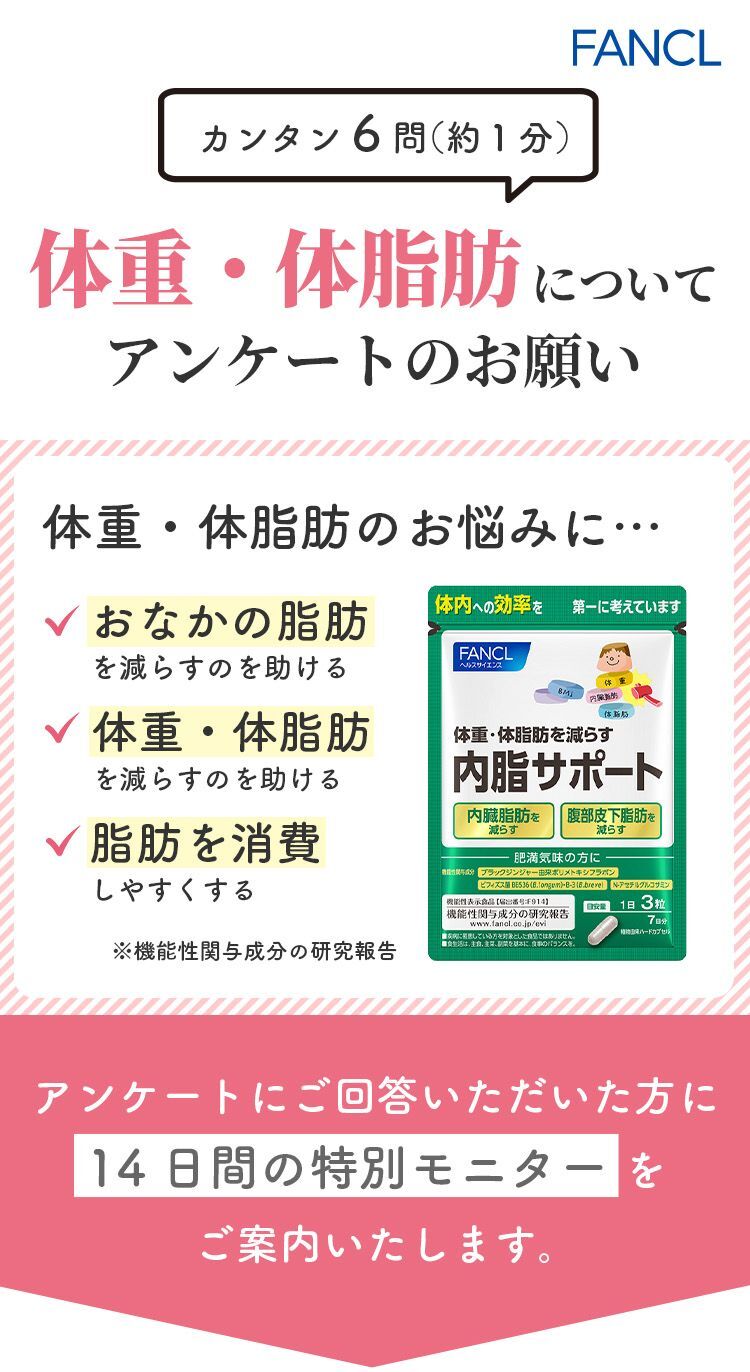 【届出表示】本品にはブラックジンジャー由来ポリメトキシフラボン、生きたビフィズス菌BB536(B.longum)・B-3(B.breve)、N-アセチルグルコサミンが含まれます。ブラックジンジャー由来ポリメトキシフラボンは、脂肪を消費しやすくすることで、お腹の脂肪(内臓脂肪、腹部総脂肪)を減らす機能が報告されています。生きたビフィズス菌BB536(B.longum)・B-3(B.breve)、N-アセチルグルコサミンは、腸内環境を良好にし、お腹の脂肪(腹部皮下脂肪、腹部総脂肪)、体重・体脂肪を減らすことで、高めのBMIを改善する機能が報告されています。肥満気味でBMIが高めの方、お腹の脂肪が気になる方に適しています。
